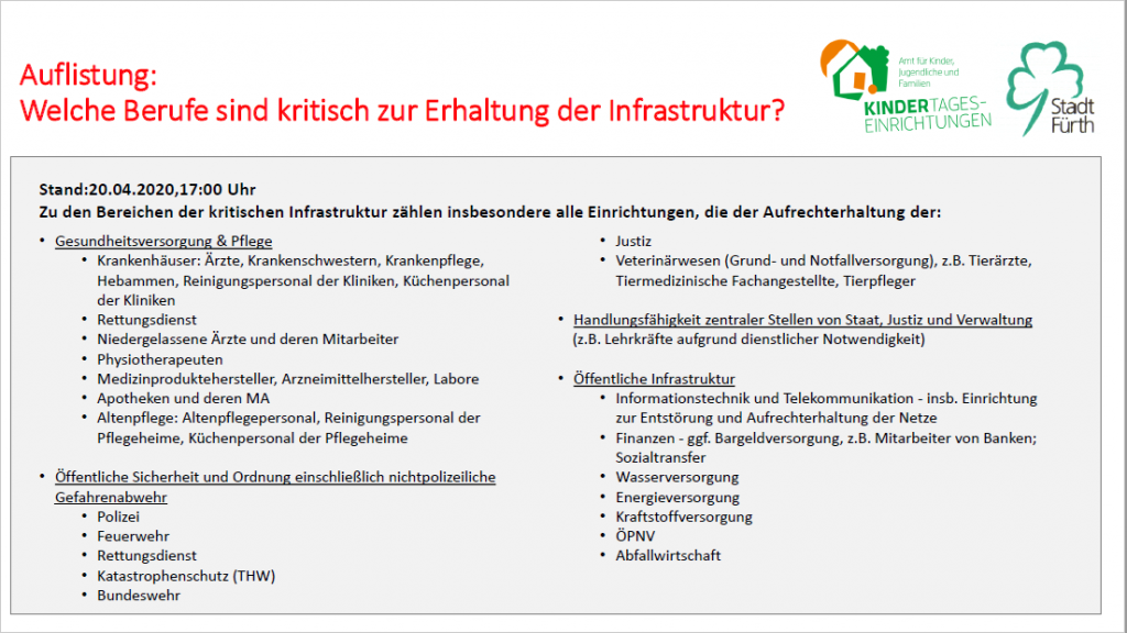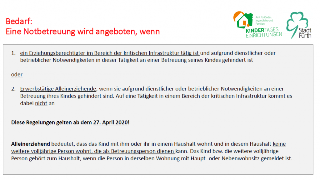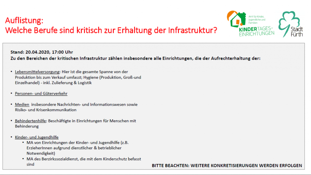 Weiteres auch auf der Seite des bayerischen Staatsministerium für Arbeit, Familien und Soziales: https://www.stmas.bayern.de/aktuelle-meldungen/pm2004-096.php